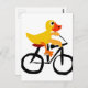 Funny Yellow Duck Riding Bicycle Postcard