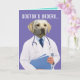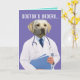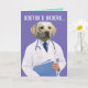 A very serious-looking yellow lab wearing a lab coat (he's a "dogtor"). The front says, "Dogtor's orders..." Inside the card has a list of orders to follow (which are very similar to dog commands): "LIE DOWN, PIG OUT, WATCH TV, ROLL OVER, REST SLEEP, HEAL. GET WELL!