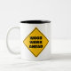 Funny yellow wood work ahead caution road sign Two Two-Tone Coffee Mug