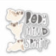 Three adorable pugs in various yoga poses with "Body, Mind, Spirit" text