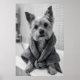 Funny Yorkshire Terrier Bathrobe Print, Bathroom Poster