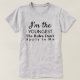 Funny sibling rivalry shirt for brothers and sisters would be cute Christmas gift for your siblings, for a family reunion, or fun gift from Mum and Dad. Reads 'I'm the Youngest The Rules Don't Apply to Me' in black typography design. Funny, coordinating shirts for other siblings in our Zazzle.com/angela65* shop.