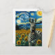Funny Zebra in faux Van Gogh Sunflower Field Postcard