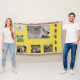 Here's a collage featuring your beloved pet! At the top centre, there's a large photo of your furry friend. Surrounding it is an L-shaped arrangement of smaller pictures. To the right, you'll find your pet's name. You can easily change the background colour by clicking 'Customise' and selecting your preferred shade.