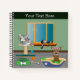 If you're a true animal lover, this notebook is tailor-made for you! Featuring a delightful cartoon illustration of a room filled with furry friends, including a contented cat on his scratch post, a charming chihuahua with its little pink hair bow in her doggie bed, and a relaxed cat basking in the window, it's a heartwarming sight. You can add a personal touch by customising it with your name or any text you desire. Moreover, you have the option to choose the font size, style, and colour that suits your preferences.