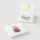 The coasters are gorgeous, a quality feel and heavy weight. They look like a precious archeological find. A rustic stone juxtaposed with a modern floral black and white print. I like the way the print goes slightly imperfect on the cut stone edges giving them a kind-of natural beauty.