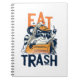 Furry Racoon Eat Trash Saying design features comic illustration of a racoon among garbage and the text EAT TRASH. Great gift for man and woman that loves trash racoon saying, comedian opossum, raccoons joke, fun garbage animal, adorable wildlife style, meme of trash panda, vector cool forest possum pics.