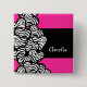 Fuschia pink black white zebra pattern heart name 15 cm square badge