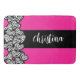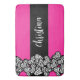 Fuschia pink black white zebra pattern heart name bath mat