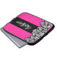 Fuschia pink black white zebra pattern heart name laptop sleeve