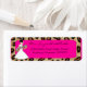 This design features a silhouette of a raven-haired bride dancing inside a giant wedding band. The background is a playful leopard pattern with an overlay colour of fuscia. There is plenty of customisable text for your address information.