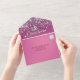 Pretty fushia pink Quinceañera birthday party all in one invitation, with graphics of silvery glitter and a silver tone crown.  Personalise the custom text for your favourite girl's special day.