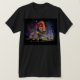 A futurecop shirt with the futurecop logo floating on top of a city skyline and below a nebulous sky.