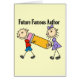 A stick figure boy and girl carry a huge yellow pencil and text reads "Future Famous Author", a cute design on T-shirts, mugs, cards, tote bags, and other items perfect for the person who loves writing!