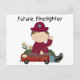 Future Firefighter T-shirts,mugs, cards, hoodies, tote bags, magnets, buttons, tote bags, and other little firefighter design apparel and gifts featuring a little boy wearing a firefighter hat with a fire engine!