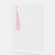 Whimsical and minimal graduation party sign featuring hand drawn illustration of a light pink tassel with the typography text that says "the future is bright."
