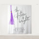 Celebrate your graduation in style with this fun, modern party backdrop featuring hand drawn illustration of a purple tassel with typography text that says "the future is bright."