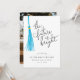 Modern and whimsical graduation photo announcement card featuring an illustration of a sky blue tassel with a hand written typography text that says "the future is bright."