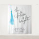Celebrate your graduation in style with this fun, modern party backdrop featuring hand drawn illustration of a sky blue tassel with typography text that says "the future is bright."