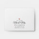 This minimal engagement or wedding party RSVP envelope shines through its simplicity. Beautiful script with flourishes reads "The Future Mr. and Mrs" alongside your personal celebration details in modern typography. Above sits a delicate printed rose gold heart.