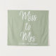 custom miss to mrs backdrop, personalised bridal shower photo booth, boho bachelorette party sign decor, hen do weekend trip decorations, rustic photobooth for her bride, to be future mrs prop, sage green white wedding banner, modern minimalist chic elegant summer, calligraphy script autumn fall winter, spring back drop simple tapestry