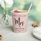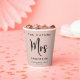 Simple modern "The Future Mrs" personalised blush pink paper cups for your bridal shower. "Mrs" is written in a large elegant script, and you can personalise with your future married name, first name and shower date.