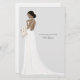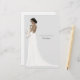 Personalised note cards with an illustrated bride. Many wedding gown, flower bouquets, hairstyles, and skin tones to choose from.