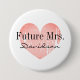 Future Mrs bride to be bridal shower heart button. Personalised name badges with cute pink love icon design. Vintage print for bachelorette party, bridal shower, girls night out and wedding party. Visit our store for more fun, classy and fancy designs for marriage. Make one for bride to be , brides maids, maid of honour, flower girl, matron of honour, mother of the bride etc.