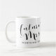 This mug features the phrase "future Mrs." in a black, modern script typography. Add your last name to be, or delete the field entirely. It was designed as a right handed mug, however the design can easily be moved to the other side of the mug transforming it into a left handed mug simply and easily by using the customise it tool.