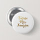 A stylish button pin for the bride-to-be. It features "Future Mrs. Thompson" in elegant gold foil script, perfect for announcing the engagement or wearing to the rehearsal dinner to celebrate the upcoming marriage.
