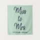 custom miss to mrs backdrop, personalised bridal shower photo booth, boho bachelorette party sign decor, hen do weekend trip decorations, rustic photobooth for her bride, to be future mrs prop, mint green wedding brunch banner, modern minimalist chic elegant summer, calligraphy script autumn fall winter, spring back drop simple tapestry