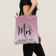 Chic pink ombre "The Future Mrs" personalised tote bag to announce your engagement or as a fun gift for a friend engaged to be married. Sparkly faux glitter drips down the top of the bag, "Mrs" is written in a large elegant script and you can personalise with a name.