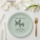 Modern and chic "The Future Mrs" personalised sage green paper plates for your bridal shower. "Mrs" is written in a large elegant script, and you can personalise with your future married name, first name and shower date.