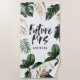 Future Mrs modern script typography and tropical leaf. With space for name.