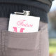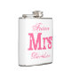 Custom Future Mrs pink wedding drink flask for bride to be with elegant vintage script text. Customisable pink and white colour. Cool wedding / bachelorette party gift idea for bride and bridesmaids. Personalise it. Alcohol / Drinking present. Custom background colour.