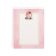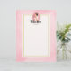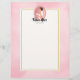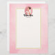 Letterhead with the text: Future mrs, with your personalised name. Illustrated with a happy smiling brown haired bride. She's wearing a white wedding gown and holding a bouquet of flowers with a pretty veil in her hair. Set inside a pink oval cameo frame with a scalloped border. A soft pink watercolor image for the background with a cream coloured rectangle layered over top with a gold coloured border.
