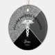 Future Physical Therapist Medical Black Monogram Ceramic Ornament makes a perfect gift idea for a physical therapy student. It has a modern elegant design with a silver faux glitter, black and grey abstract background. A white medical caduceus symbol is on the centre and "future physical therapist" is in bold minimal lettering. Personalised with name in white trendy calligraphy script lettering followed by customised year. Design is on both sides. CLICK PERSONALIZE TEMPLATE OPTION AND FOLLOW THE PROMPTS.