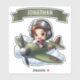 This aviation sticker is made for boys who dream of flying high. Featuring an image of a boy in pilot gear flying a Spitfire inspired airplane, it captures courage, imagination, and the excitement of taking control of the skies. Personalize it with your child's name.