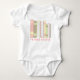 Books are in this baby's future! A line of books in pastel colours of pink, green, yellow and brown proclaim that this little girl will be a reader someday. Perfect gift for a book-loving Mum and Dad.