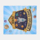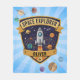 This playful personalised fleece blanket features a bold space explorer badge for future explorers. In the centre of the badge is a playful cartoon rocket soaring through space with planets orbiting around it.