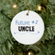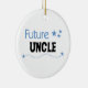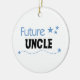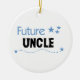 Future Uncle keepsake boxes, tiles, ornaments, notebooks, mugs, magnets, cards, buttons, hoodies, keychains, and other future uncle apparel and gift items with a blue and black text and star design.