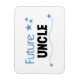 Future Uncle keepsake boxes, tiles, ornaments, notebooks, mugs, magnets, cards, buttons, hoodies, keychains, and other future uncle apparel and gift items with a blue and black text and star design.