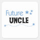 Future Uncle keepsake boxes, tiles, ornaments, notebooks, mugs, magnets, cards, buttons, hoodies, keychains, and other future uncle apparel and gift items with a blue and black text and star design.