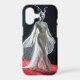 A sleek, metallic alien figure walks down a red carpet, its glistening attire illuminated by the lights, evoking a sci-fi or fantasy setting