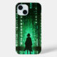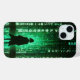 An anime-inspired design featuring a girl with futuristic attire, standing with her back to an immense digital wall made up of flowing Japanese characters. The atmosphere is sci-fi, with neon lights and tech details creating a vibrant cyberpunk vibe.