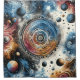 This mesmerising artwork blends the timeless beauty of batik patterns with a futuristic cosmic theme. Featuring intricate circular motifs, swirling nebulae, and celestial elements, the design evokes a sense of mystery and wonder. The rich colour palette of deep blues, fiery reds, and glowing golds enhances the galactic aesthetic. Perfect for lovers of space, astrology, and abstract sci-fi art. Ideal for apparel, home decor, and accessories.