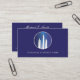 A unique business card which is ideal for financial companies, banking institutions, or investment firms, this card boasts an innovative design of futuristic skyscrapers against a midnight blue background. Also suitable for commercial real estate firms.