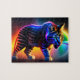 Colourful puzzle with tiger wild cat in fantasy world with neon lights futuristic sci-fi style design
