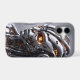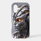 Protect your essential daily technology with a phone case that reflects the ultimate fusion of advanced hardware and artificial intelligence. The vertical format of this tough case acts as the absolute perfect canvas for this breathtaking cyborg portrait. The highly detailed silver chrome face plates, complex mechanical wiring, and intense glowing orange eyes create a mesmerizing, futuristic aesthetic that will instantly turn heads everywhere you go.