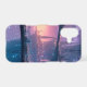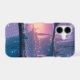 Futuristic cityscape with towering structures and interconnected platforms, reflecting in a body of water. The color palette is dominated by blues and purples, with hints of orange and pink from the setting sun. The city is illuminated with numerous lights, creating a vibrant and dynamic atmosphere.